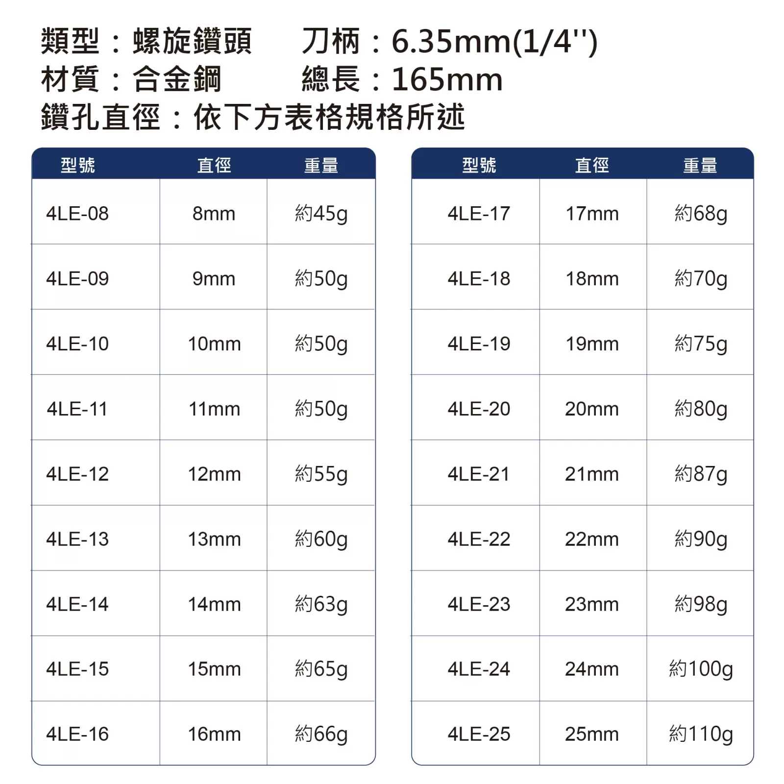 四刃四螺旋設計,定位準確。